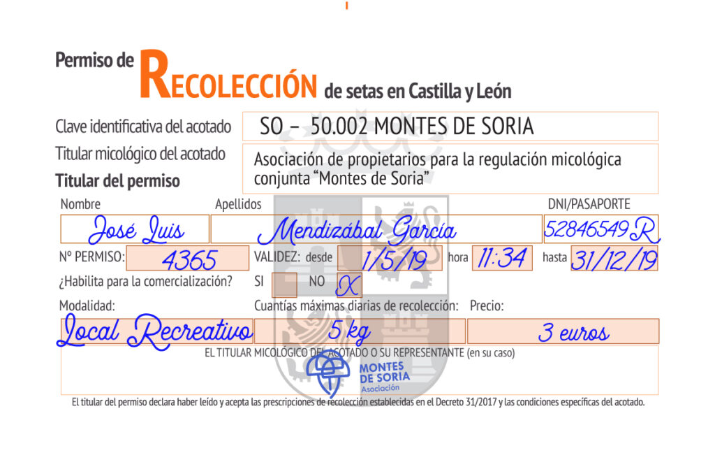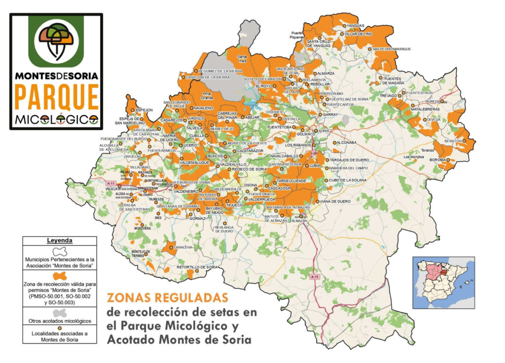 Autoriza la recogida de setas y su comercialización a aquellas personas que estén empadronadas en alguno de los pueblos asociados al Parque Micológico y Acotado Montes de Soria. La Cantidad máxima es de 30 kg al día y tiene vigencia hasta 31 de diciembre del año actual.