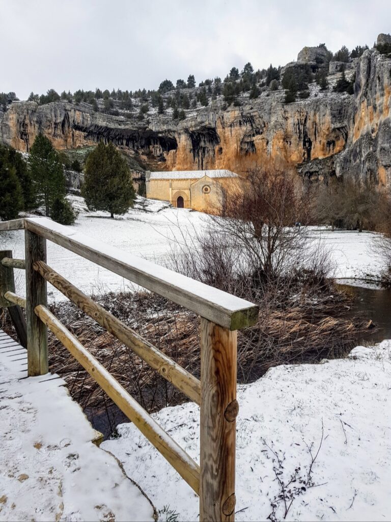 Parque Natural desde 1985, este pedacito de más de 10.000 hectáreas que comparten Soria y Burgos suele ser de acceso gratuito cuando llega la nieve precisamente por ser época de poca afluencia turística. Es la oportunidad ideal para ver completamente diferente la ermita de San Bartolo. Otro punto a favor es el escaso desnivel del terreno lo que elimina parte de las dificultades de caminar en tan particulares circunstancias. El único aspecto negativo es que el templo no está abierto, pero se suple con la estampa de los acantilados de color oxidado acompañados del tono níveo.